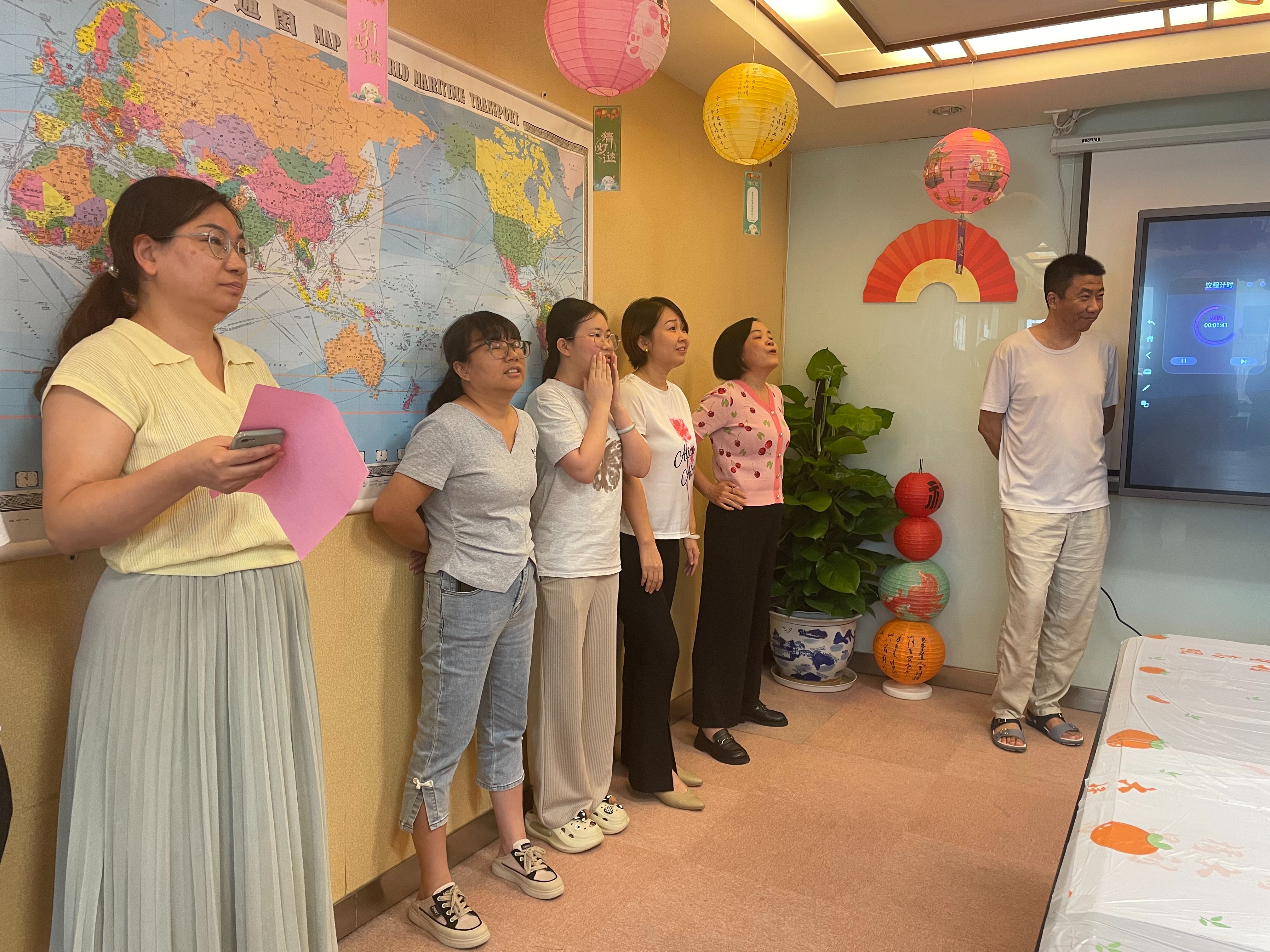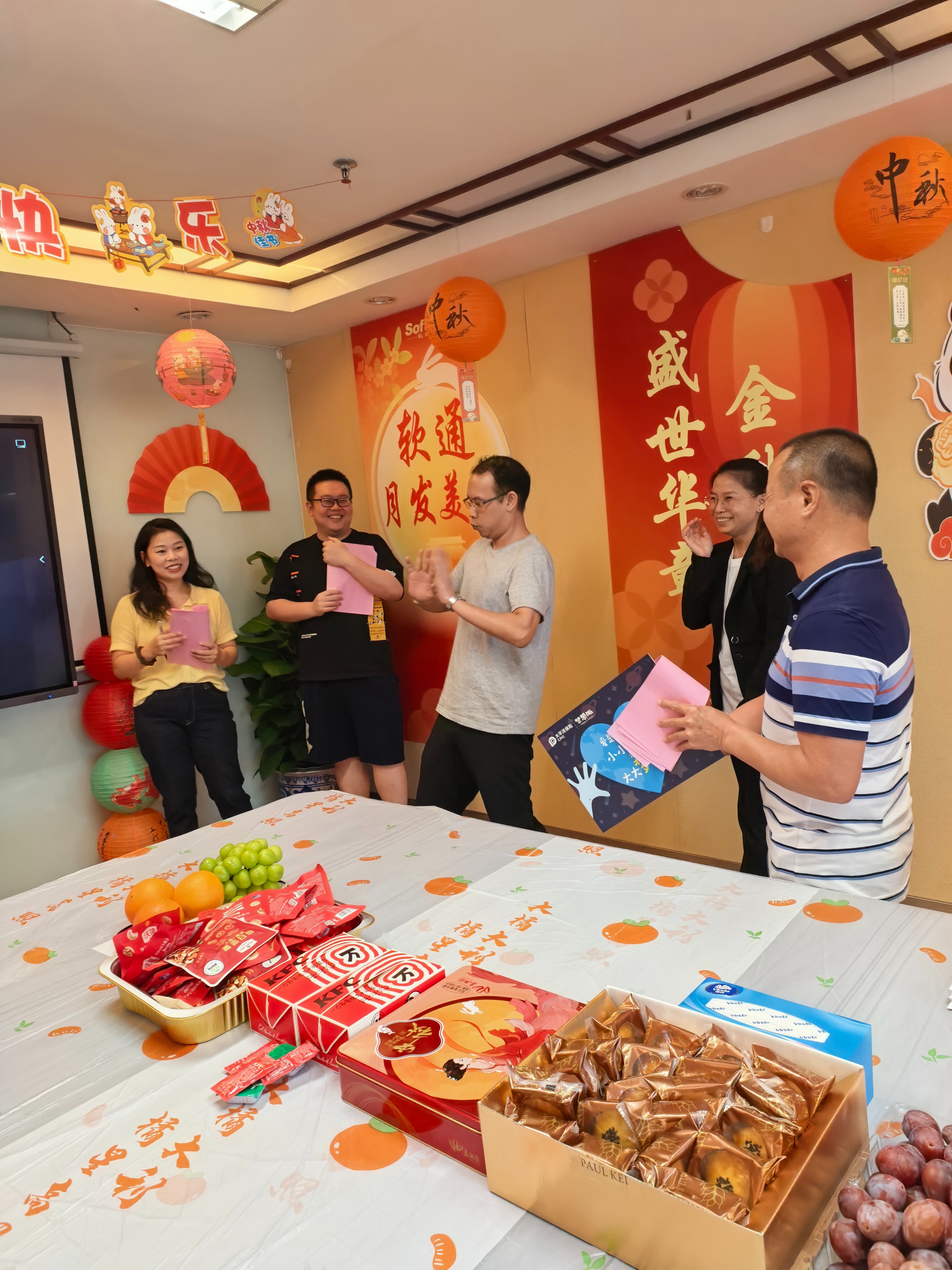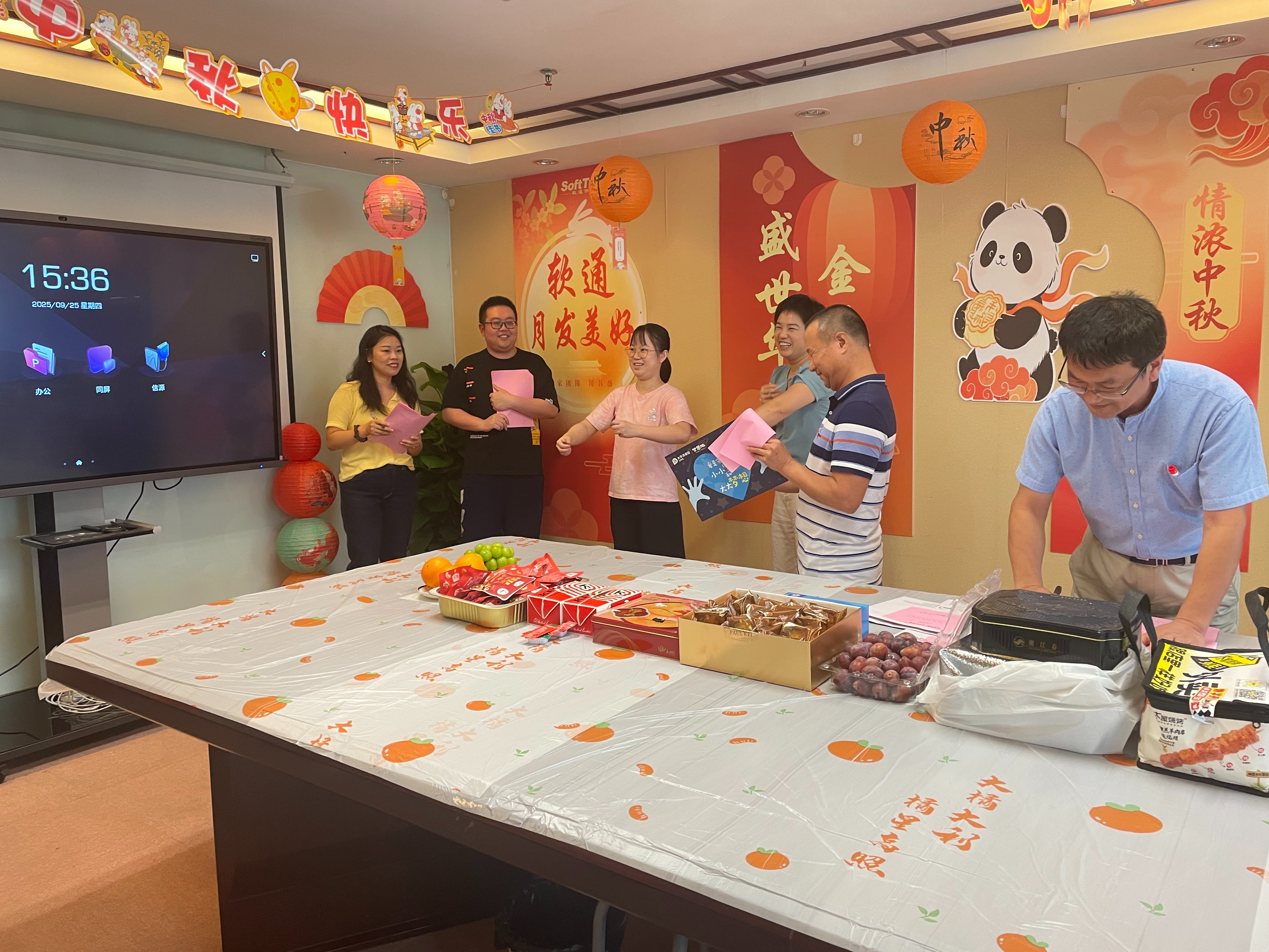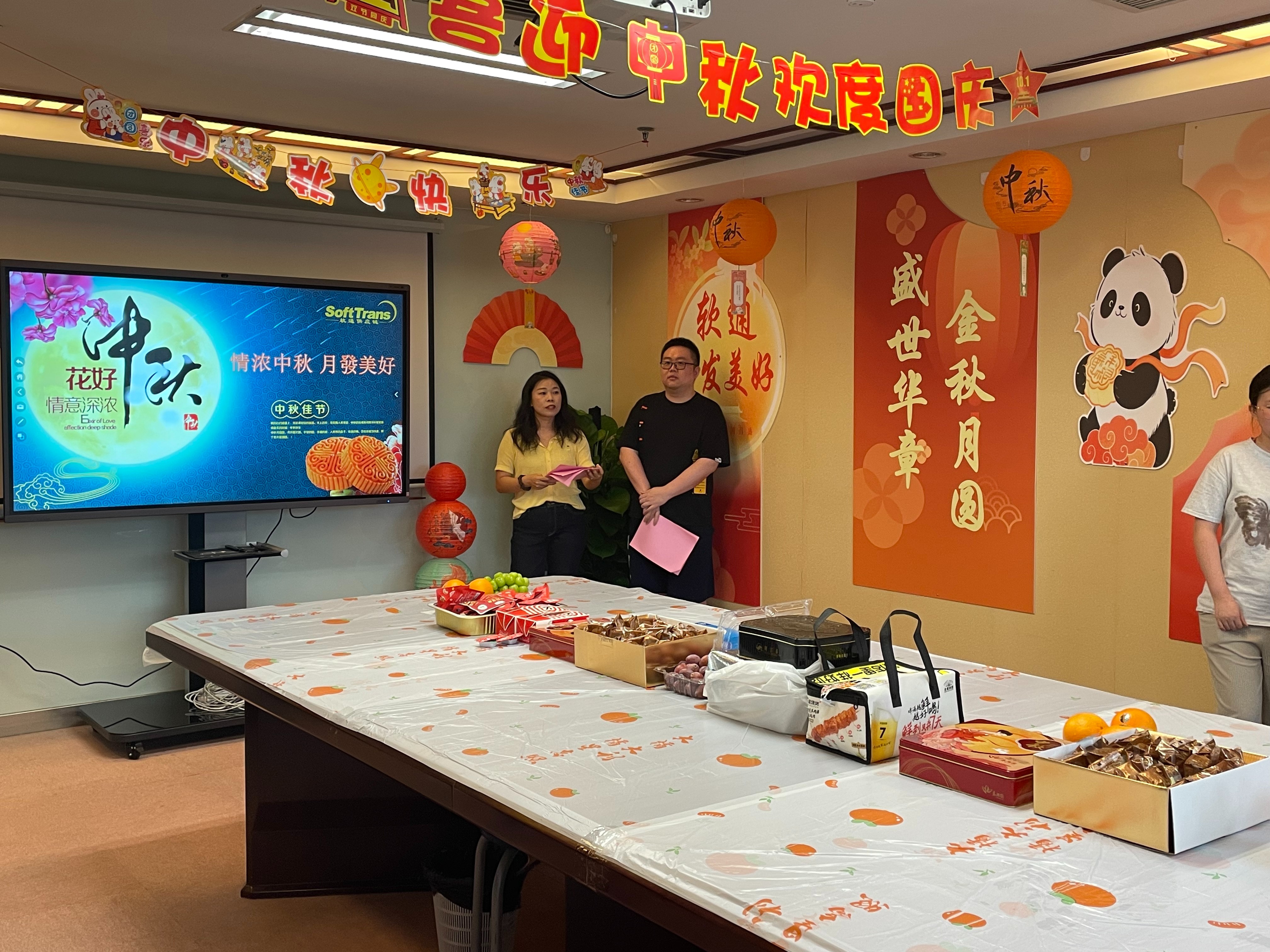 随后,趣味互动环节迅速点燃全场热情。“你划我猜” 游戏中,共有五组队员参与进来,各组成员通过有趣夸张的肢体语言、形象的口头描述、丰富的表情互动猜词,引得全场笑声此起彼伏,生动演绎了‘赏月品饼’‘猜灯谜’‘拜月祈福’等中秋经典习俗场景。“中秋文化有奖问答”环节,题目涵盖中秋节起源、中秋诗词等内容,兼具知识性与趣味性,员工们踊跃举手抢答,在欢乐互动中加深了对传统节日的认知。游戏参与者与问答优胜者均获赠精心准备的中秋主题小礼品,现场掌声与欢呼声不绝于耳。
