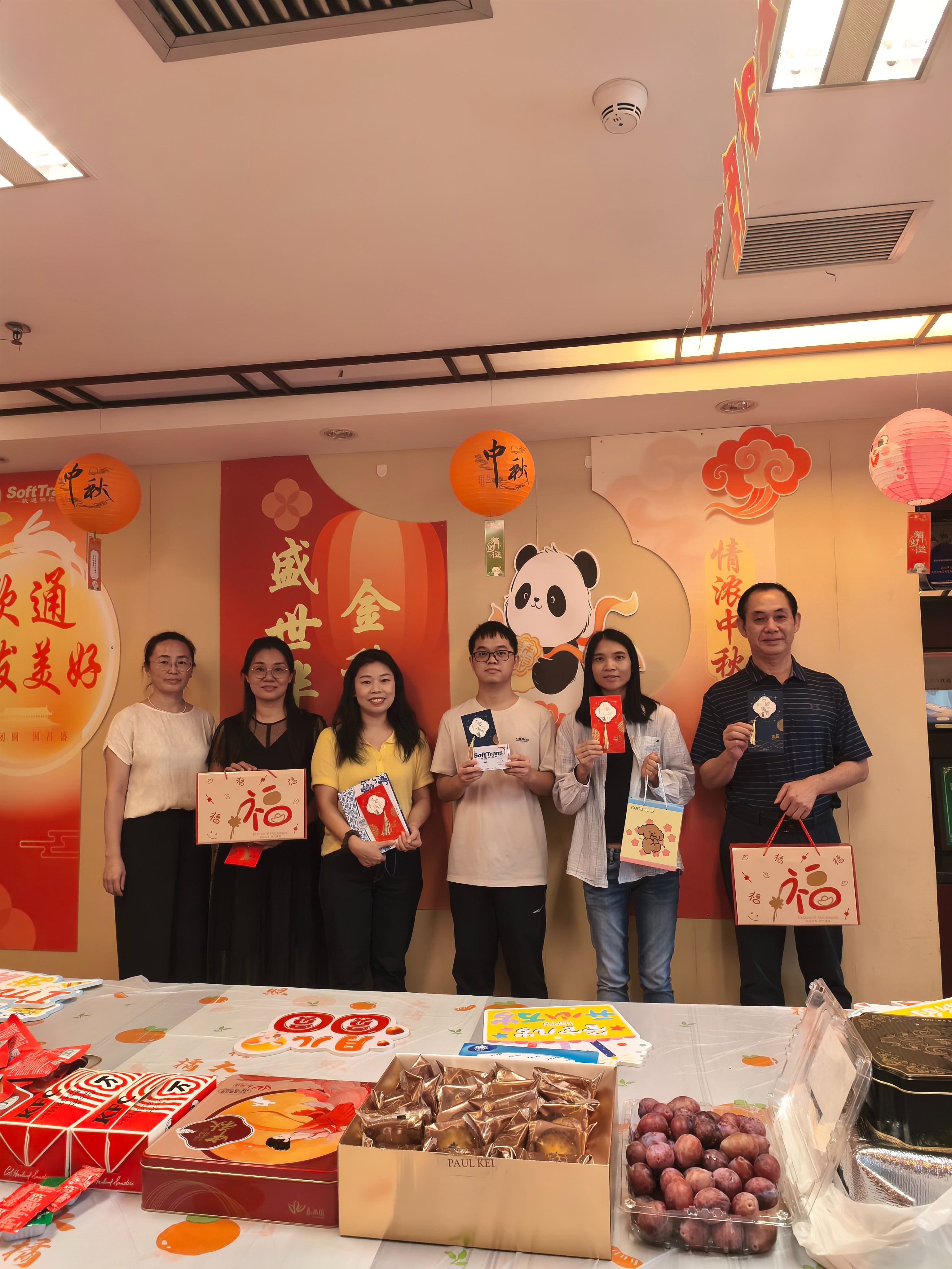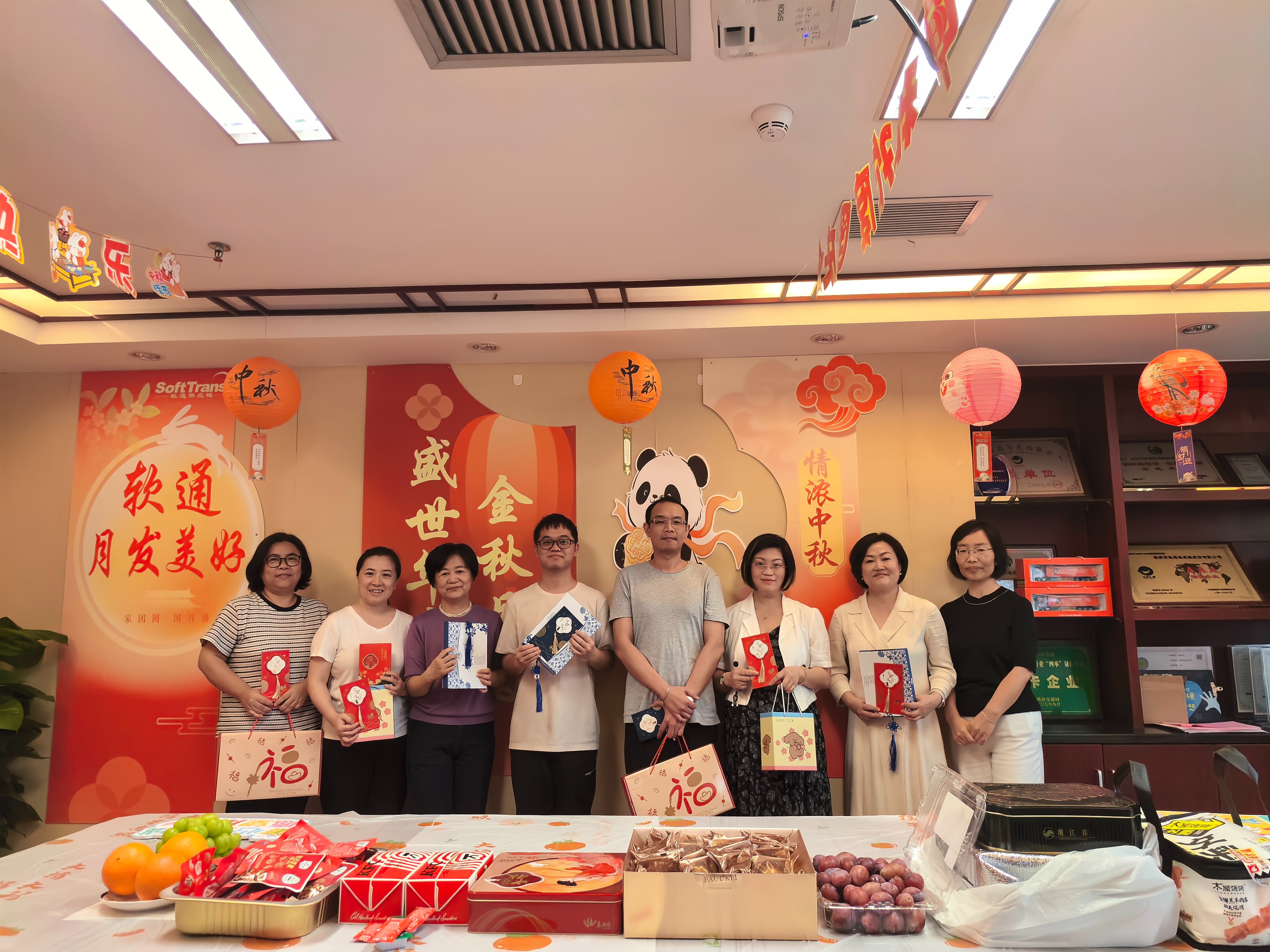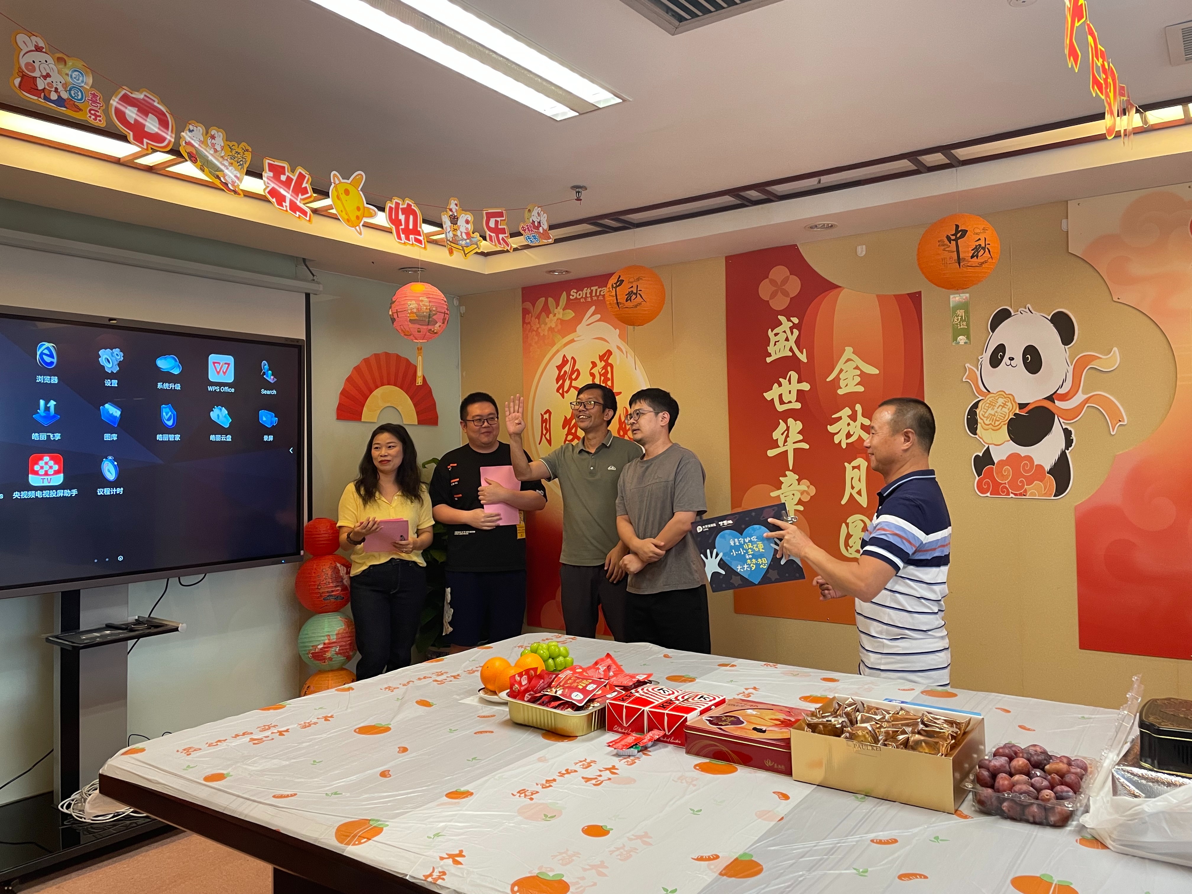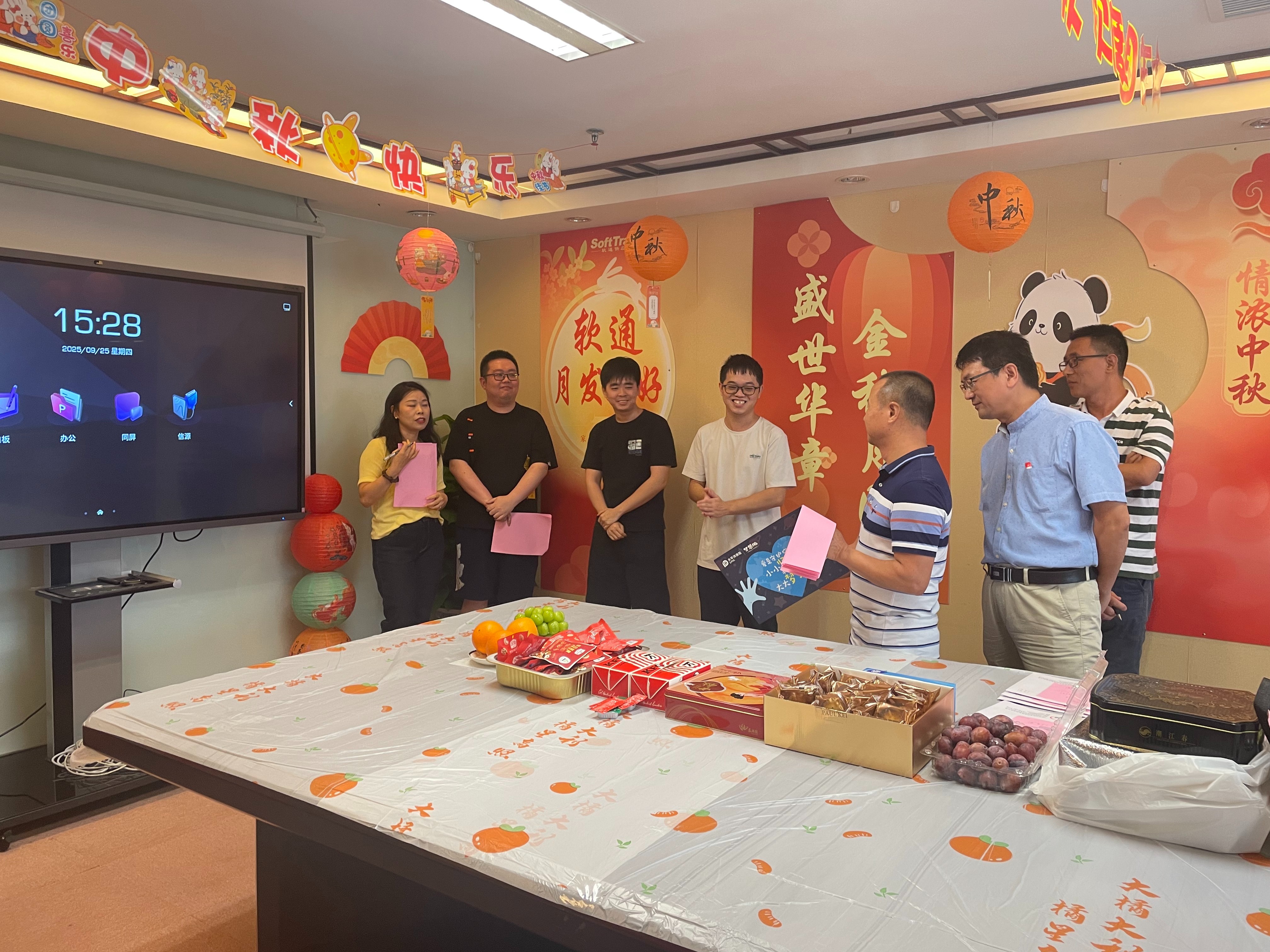生日庆祝环节将活动推向高潮。下半年的寿星们受邀上台,伴随着全场齐唱的温馨生日歌,公司领导亲手为他们送上定制的生日祝福卡及礼物,中秋送福盲盒,每份心意都承载着公司对员工的关怀与期许。